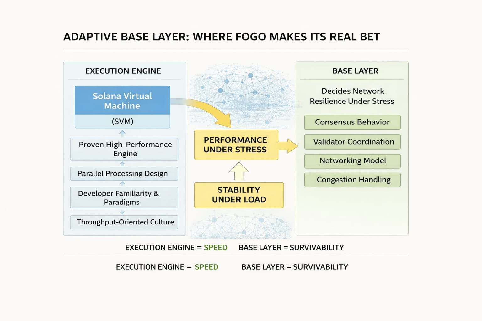 What makes Fogo strategically interesting is not that it is fast. It is that it chose to build on the Solana Virtual Machine — and then made base-layer decisions around how that engine behaves under stress.