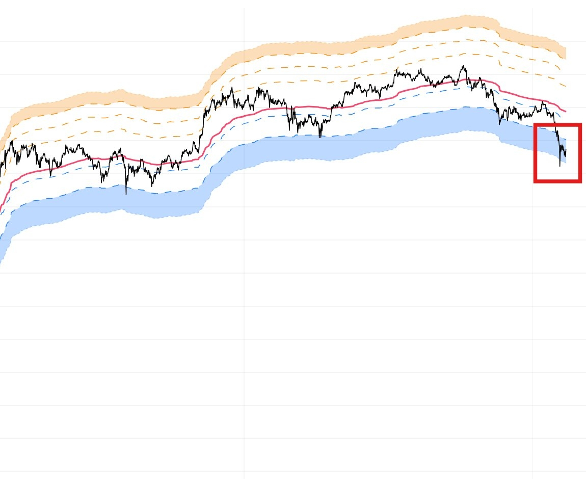 ⬆️ The chart shows BTC short-term holder cost basis std dev bands , Price dropped to -1.5SD (blue zone) & bounced Notably, price hadn’t been this low in 3 yrs – a statistical outlier for STHs