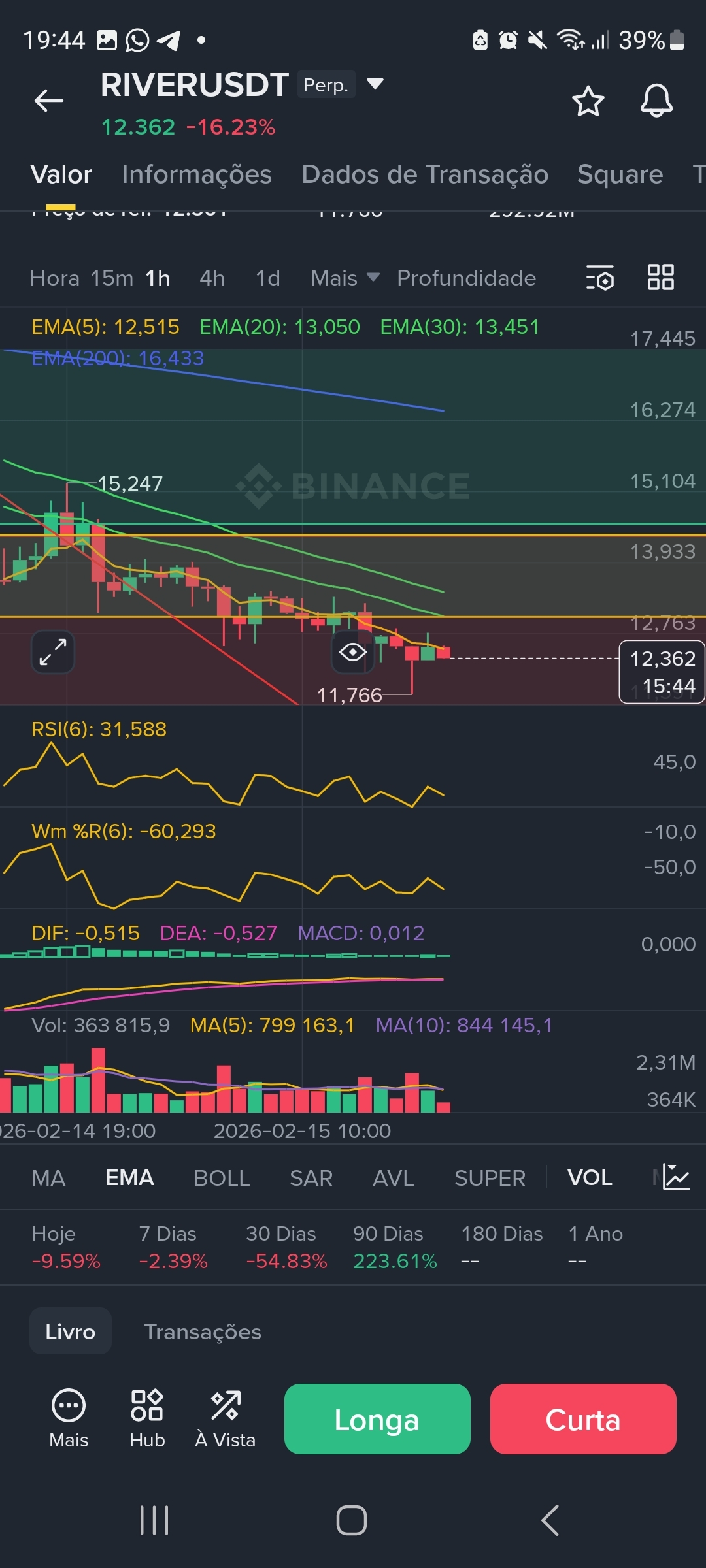 Mostrando o par $RIVER em diferentes tempos gráficos (1D, 4H, 1H e 15m). Com base nos documentos e no plano de trading enviados, aqui está a análise técnica: