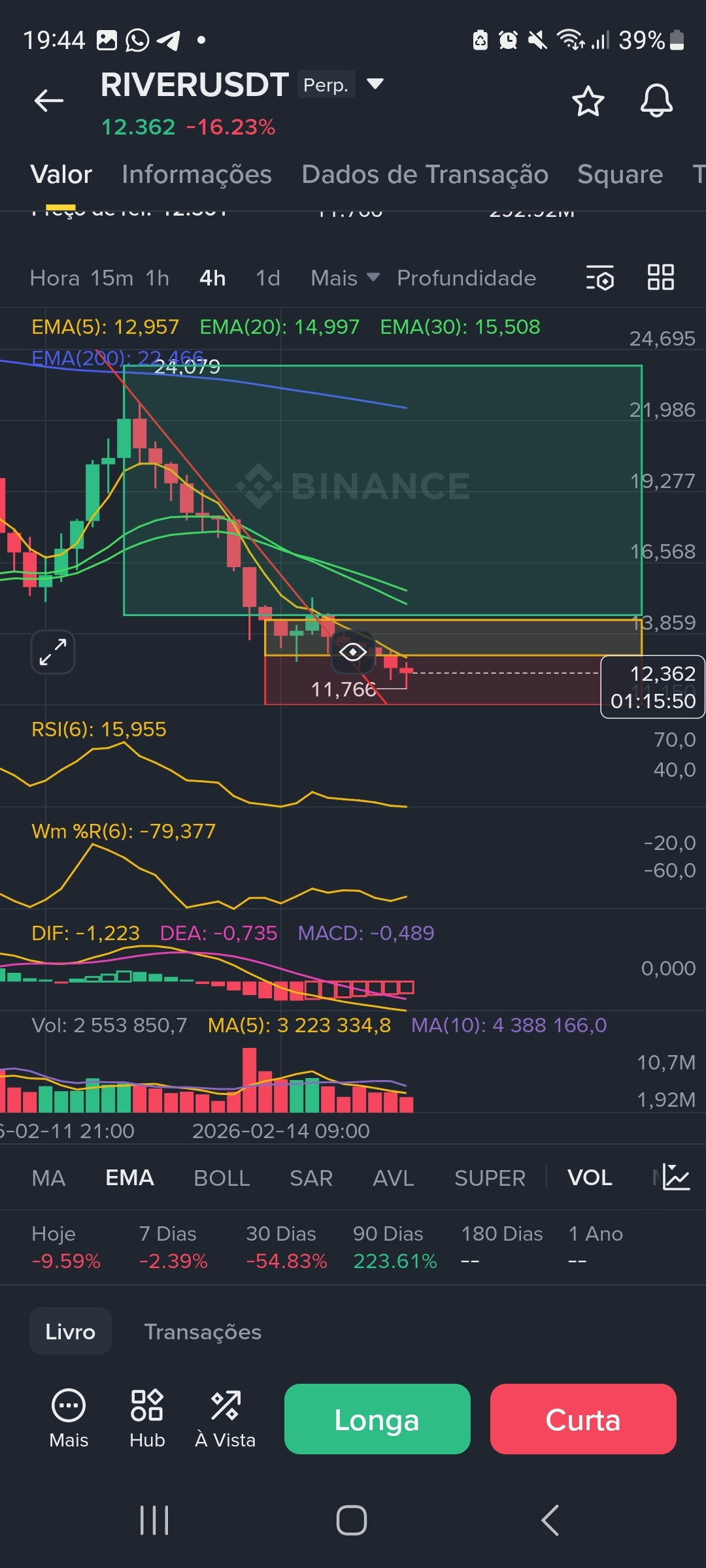 * RSI: No gráfico de 4H, o RSI(6) está em 15,955, aproximando-se da zona de sobrevenda extrema, mas ainda não abaixo de 10: +10%.