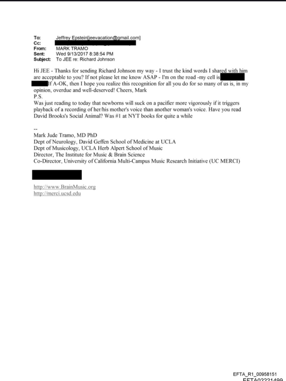 UCLA'S PROFESSOR MARK TRAMO ALLEGEDLY TOLD EPSTEIN TO PLAY A MOTHER'S VOICE FOR BABIES TO SUCK FASTER