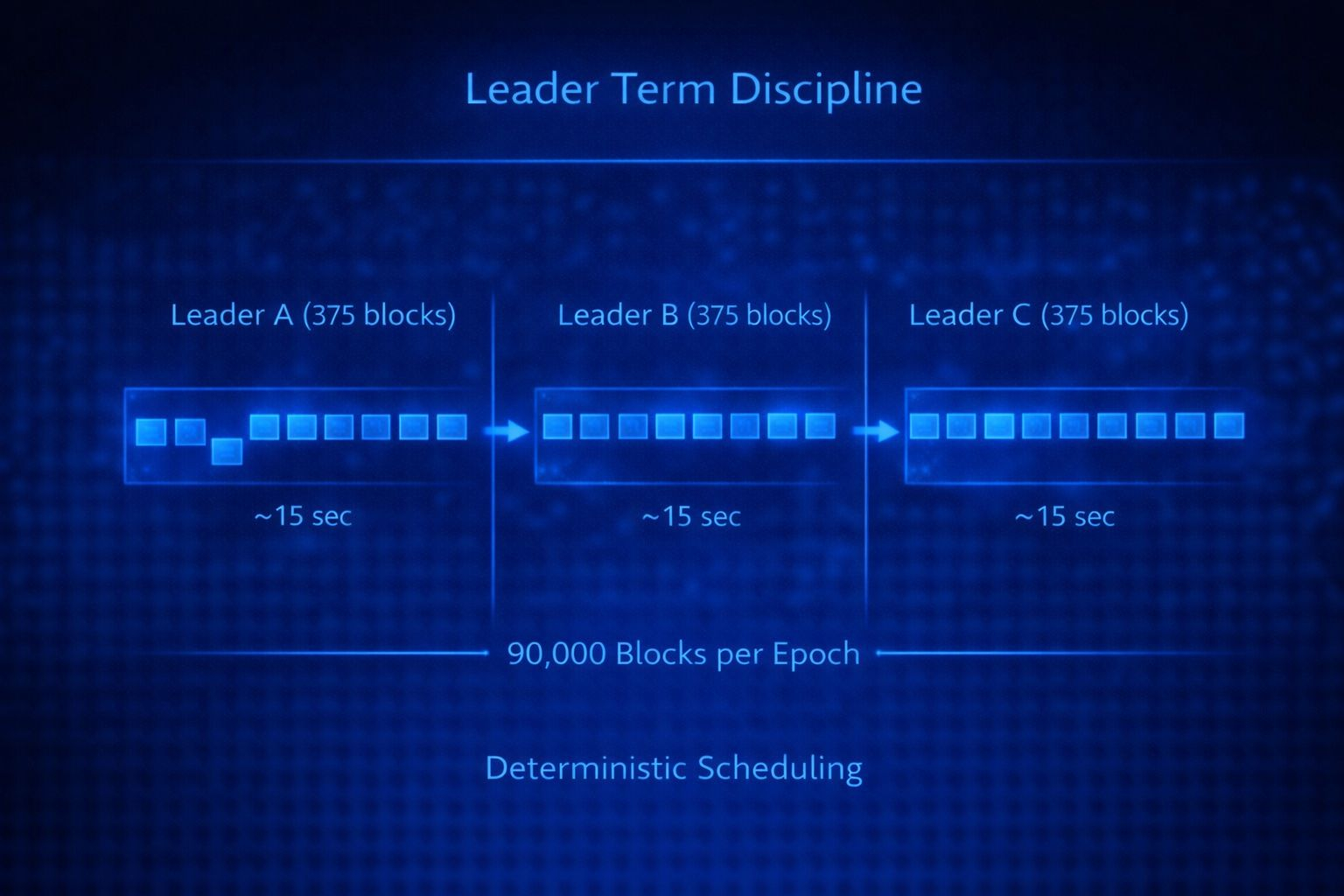 ~375-block leader terms (about 15 seconds per leader)