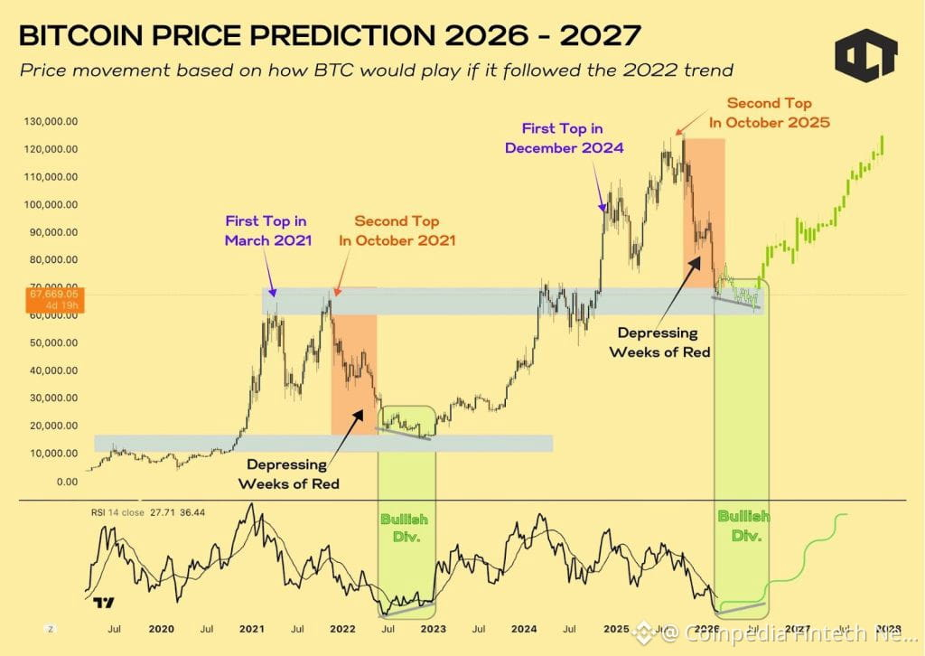The Bitcoin price is hovering in a range of $60K to $70K and quietly sketching a structure that feels eerily familiar. If this is a bullish divergence phase like the one after the 2021 crash, then the current Bitcoin price prediction might frustrate impatient bulls more than outright bears ever did.