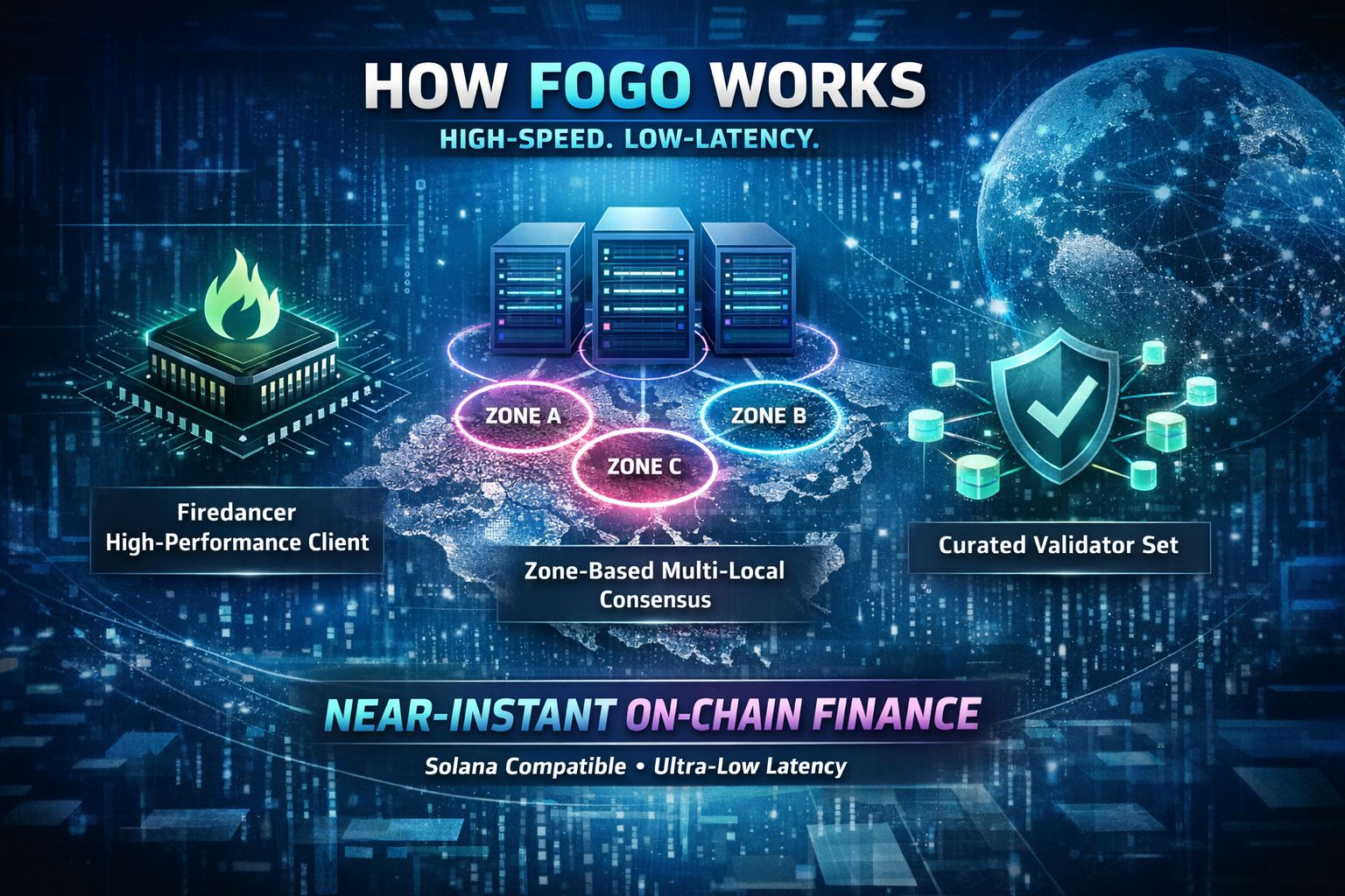 @Fogo Official isn't just "another fast chain", it’s a specialized financial infrastructure built on the Solana Virtual Machine (SVM). While other blockchains try to do everything, Fogo is hyper-optimized for trading. It achieves this by combining Firedancer technology with a unique "multi-local" consensus model.