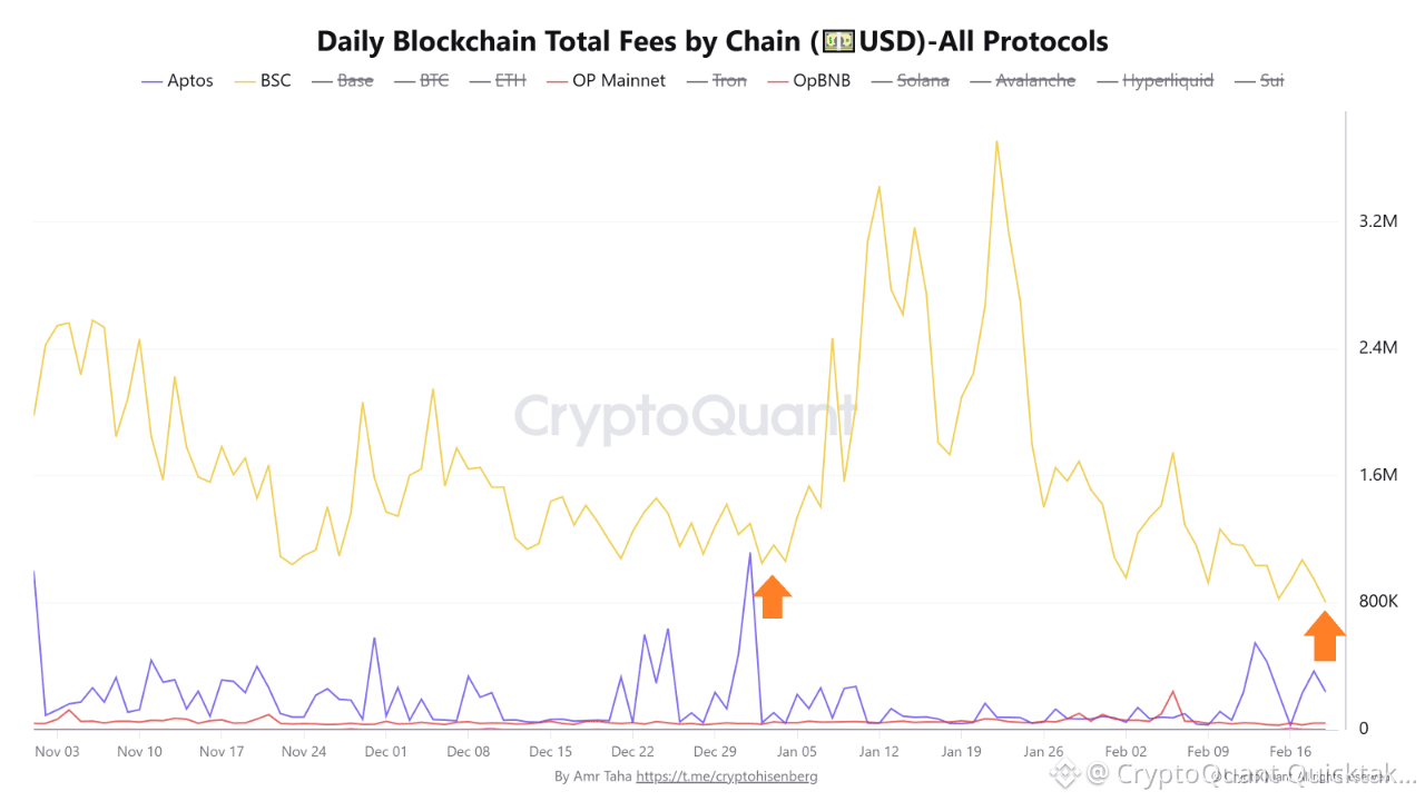 đ The last time fees dropped close to these levels was on January 2, 2026, when total BSC fees were slightly above $1M.