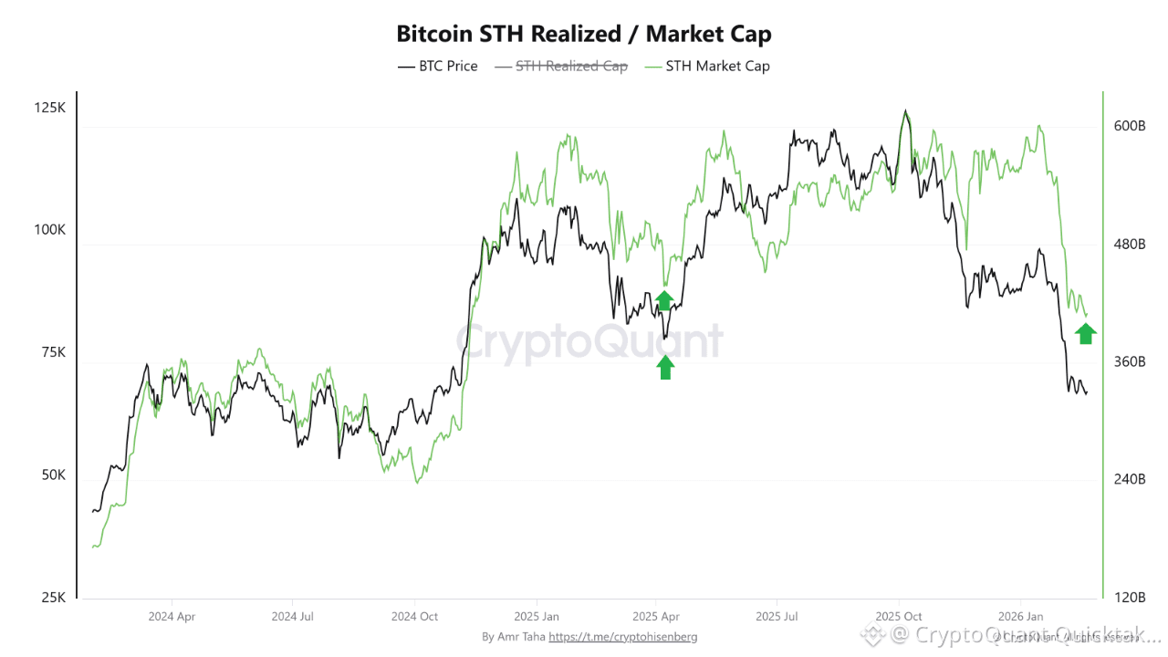 đ the chart shows a sharp drop in STH Market Cap to around $410B, breaking below the previous low of $440B recorded on April 8, 2025.