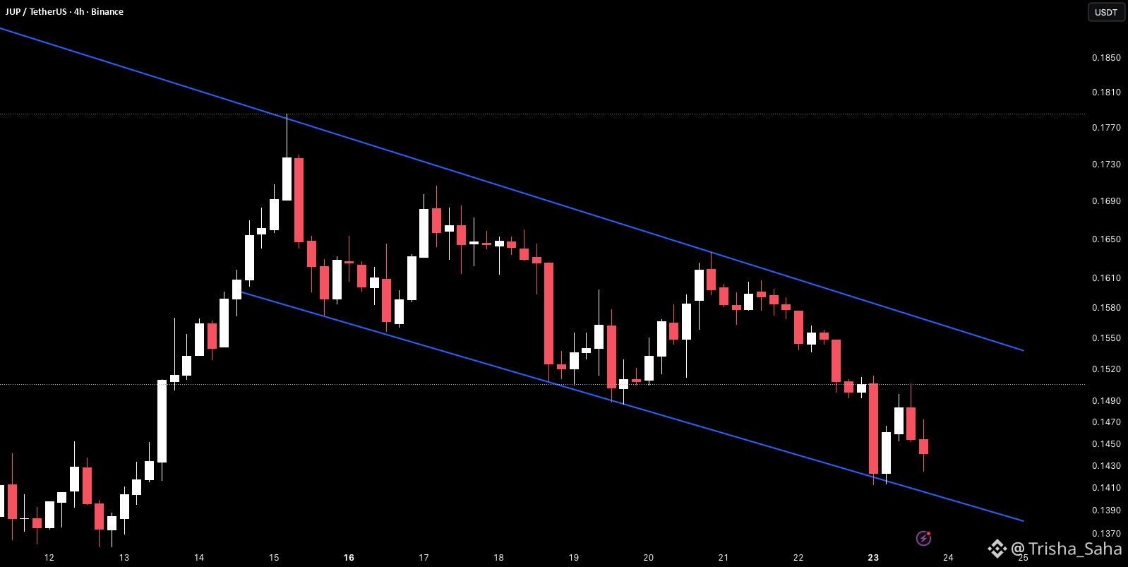 The reaction at the lower trendline will define the next move.$JUP