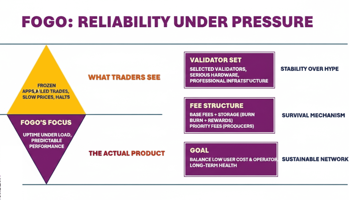 I looked deeper into Fogo and what stood out is not how fast it is but how it thinks about reliability. Traders do not experience blockchains as blocks. They experience them as frozen apps failed trades slow price updates and sudden halts during volatility. That is the real product.