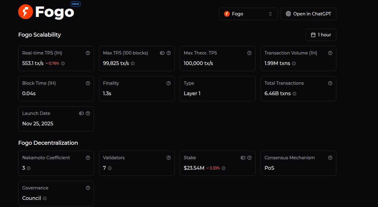According to public analytics platform Chainspect (which tracks live performance metrics like TPS, block times, and finality across dozens of chains), @Fogo Official recorded a peak of 99,825 transactions per second on mainnet.