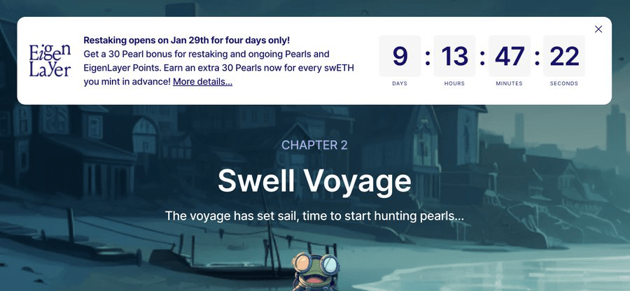 例如Swell @swellnetworkio 质押TVL高达4.2亿+美金,算是Eigenlayer生态排名靠前的,目前Swell正在进行的质押活动给珍珠奖励,在一季度末可以兑换 $Swell 代币;