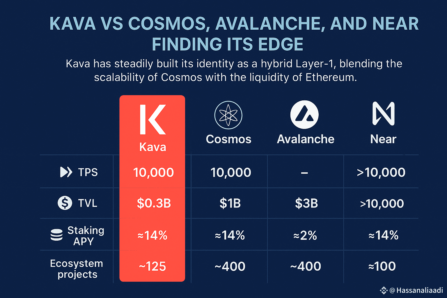 When stacked against rivals like Cosmos (ATOM), Avalanche (AVAX), and Near Protocol (NEAR), Kava shows both strengths and gaps.
