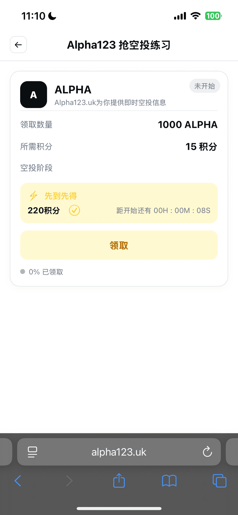 每天练习抢空投模拟,练习反应能力,练习图片验证,让你比别人快人一步(网站如图)