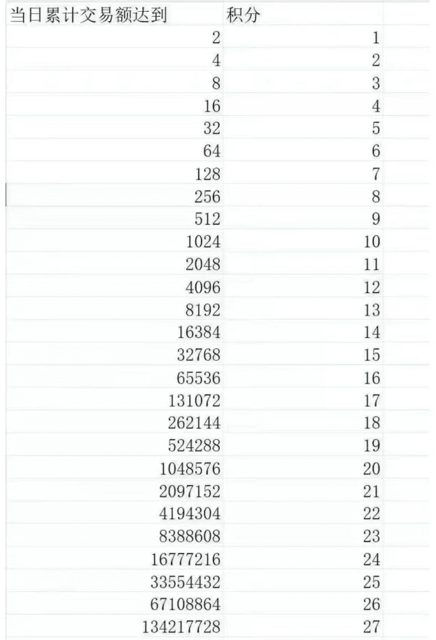 5.有些朋友不知道多少积分对应多少交易量,参考以下表格