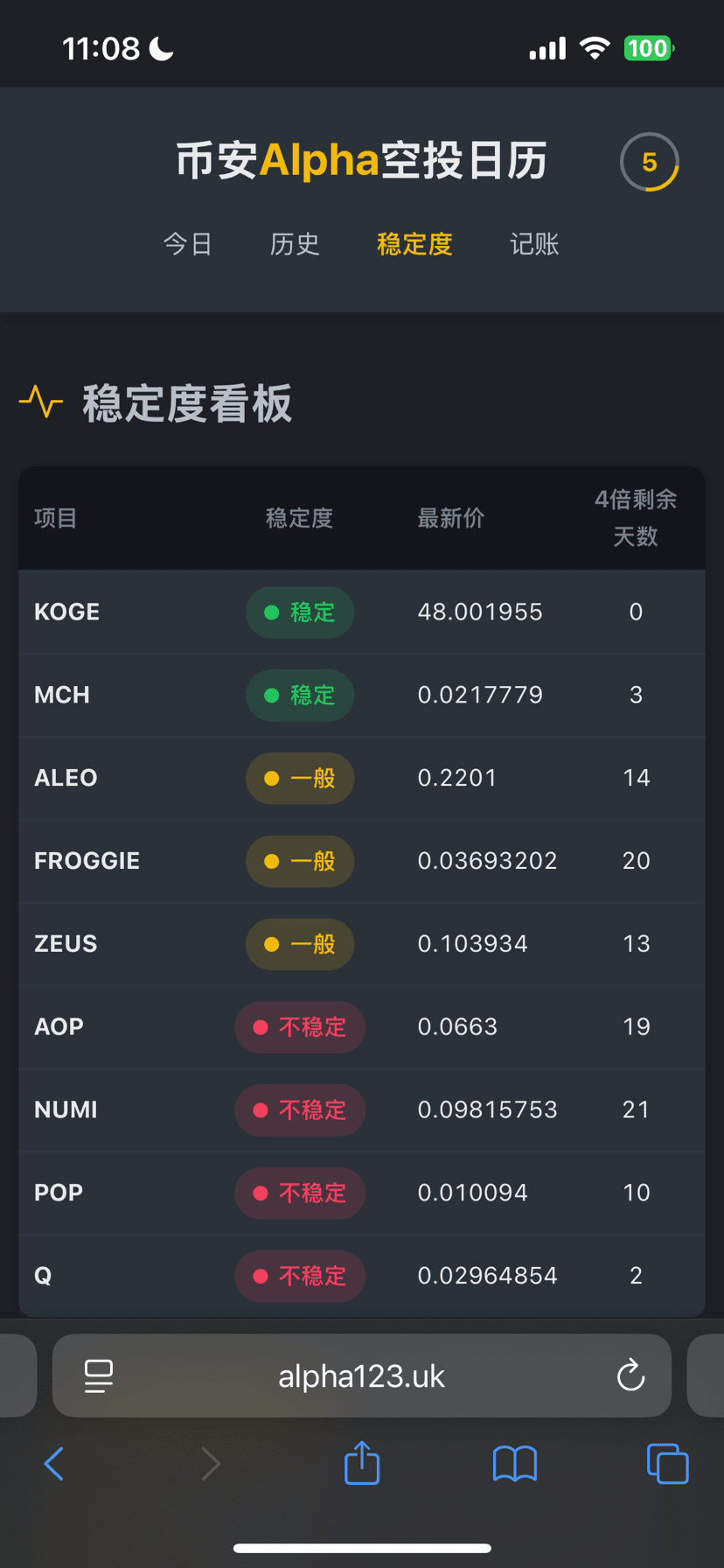 稳定性:选择价格波动小的代币,避开上市首日(波动大)。