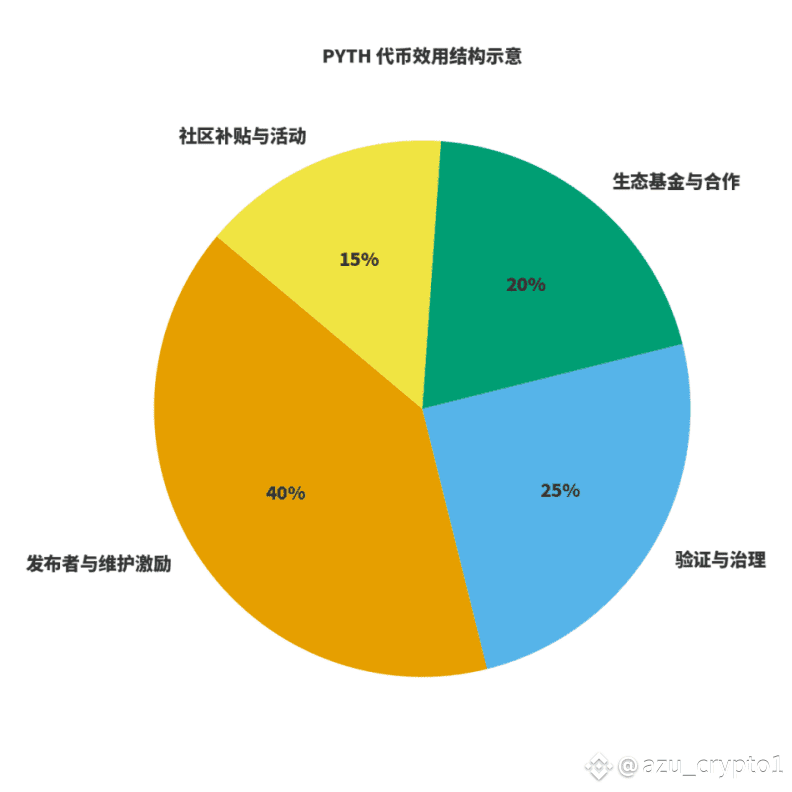 判断一个网络是否健康,要看两件事:其一,收入是否与价值创造绑定;其二,激励是否与长期质量绑定。对 $PYTH 而言,我把它理解为三重角色:数据生产与维护的燃料;治理与验证的权重;生态拓展的杠杆。发布者与维护者通过可预期的代币激励参与;网络收入则来自数据订阅与使用,由治理将收入在维护、激励、生态拓展之间分配。我据此画了一张“效用分配”的示意图,具体比例会随治理演进微调,但原则不变:发布与维护占较大权重;治理与验证保证稳态;生态与社区负责外延与破圈。