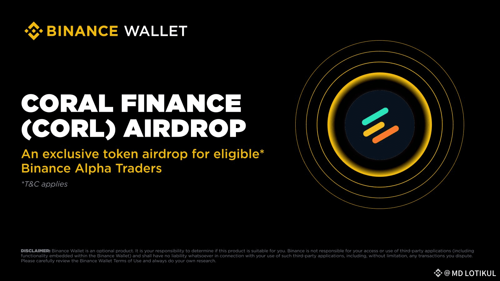 Get ready! Binance Alpha will be the first platform to feature Coral Finance (CORL) on October 12. #CORL