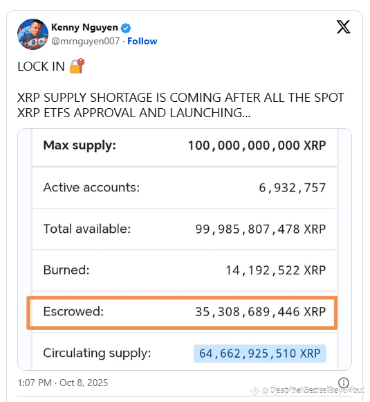 XRP Crypto Enthusiast Kenny Nguyen shared a post focused on XRP’s supply dynamics in anticipation of potential spot XRP ETF approvals.