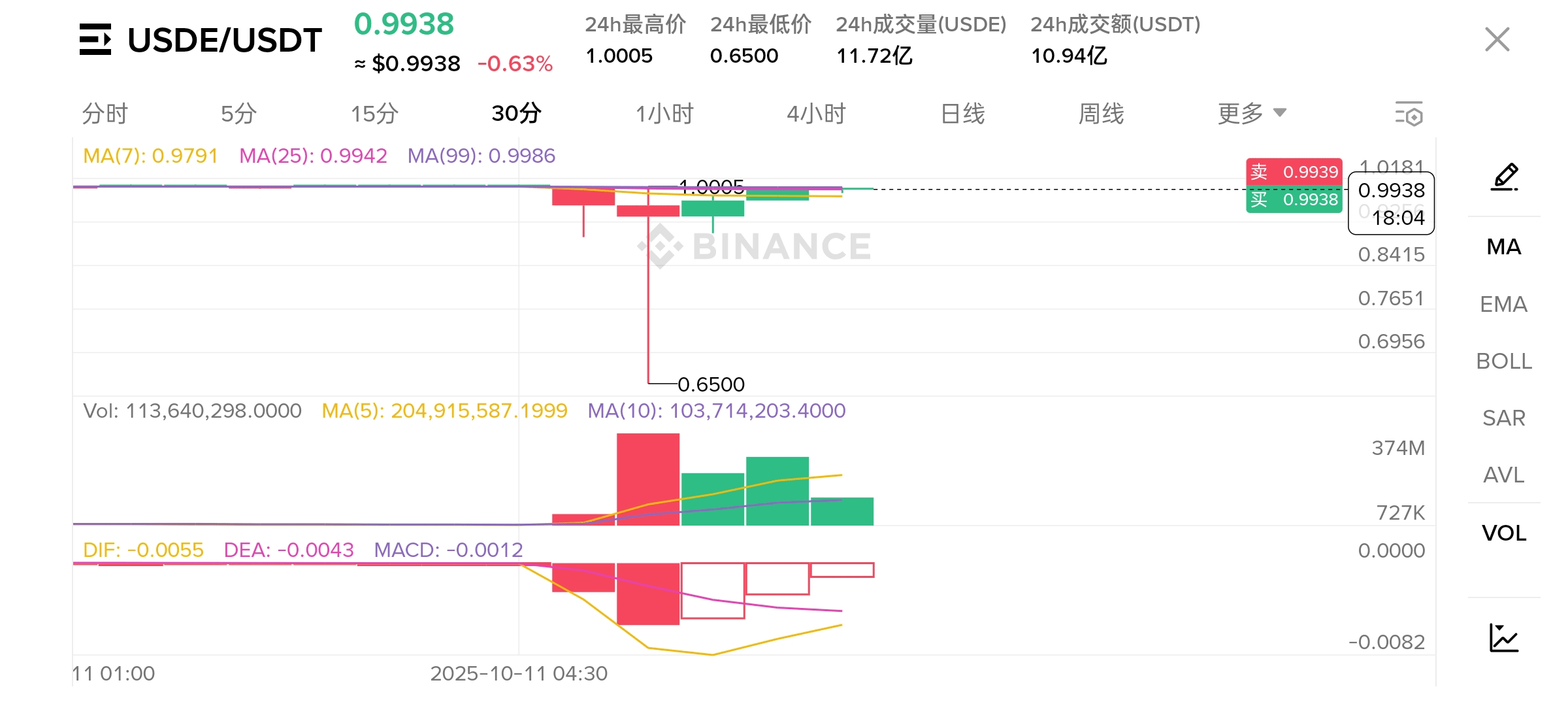 目前还有一种说法:本次暴跌来源于usde循环贷的机构爆仓。用户将BTC、ETH等核心资产抵押进Aver套出Usdt,然后核心资产价格下跌引发连锁反应最终抛锚。