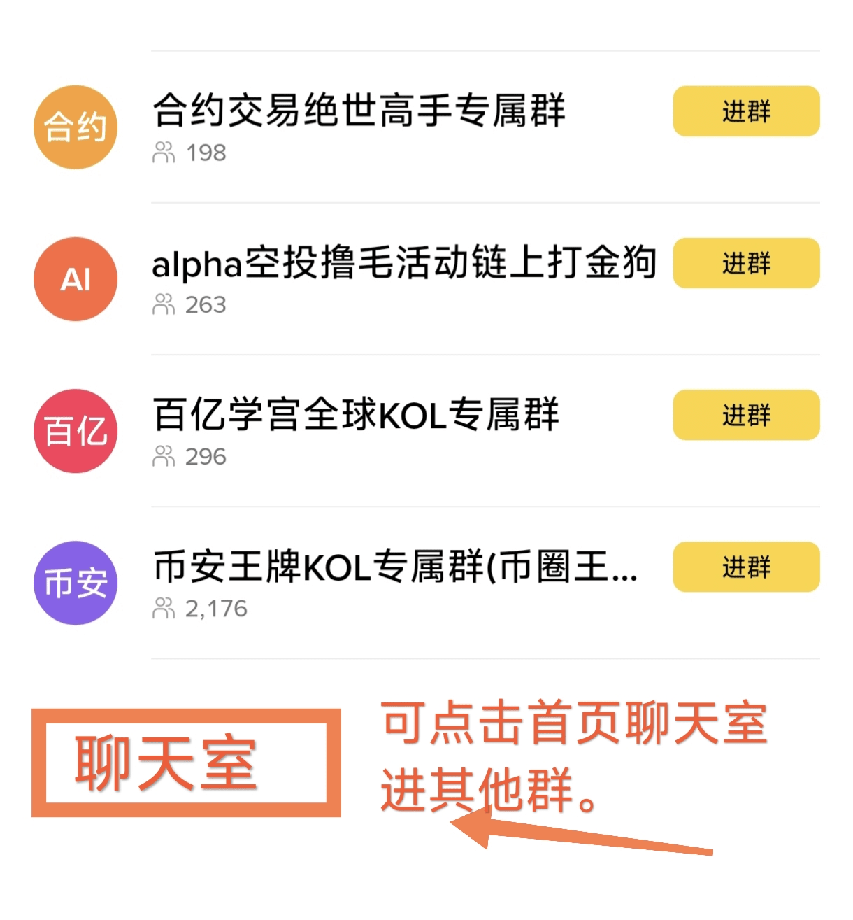 ❗也可点击首页,进入其它群。