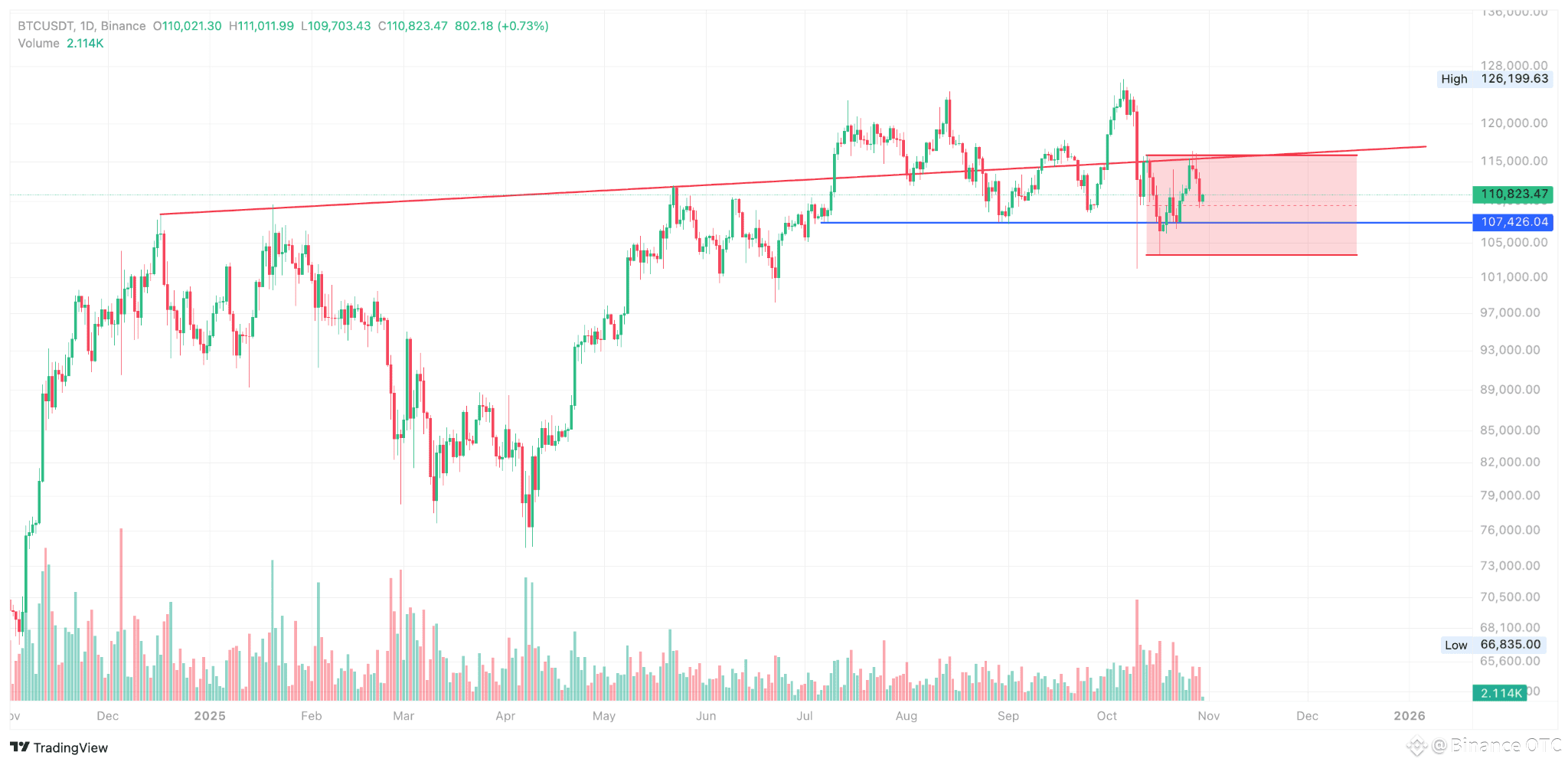 So far, BTC has fluctuated within a broad range of approximately $103,500 to $116,000. U.S.-China trade tensions have since eased with positive developments from both sides. U.S. Treasury Secretary Scott Bessent confirmed that trade negotiations between the two nations are progressing well, with some agreements already reached. President Trump met with Chinese leader Xi Jinping in Busan, South Korea, on October 30, 2025. Markets remain optimistic about this summit, anticipating it could lead to further de-escalation in the trade war between the world's two largest economies by GDP.
