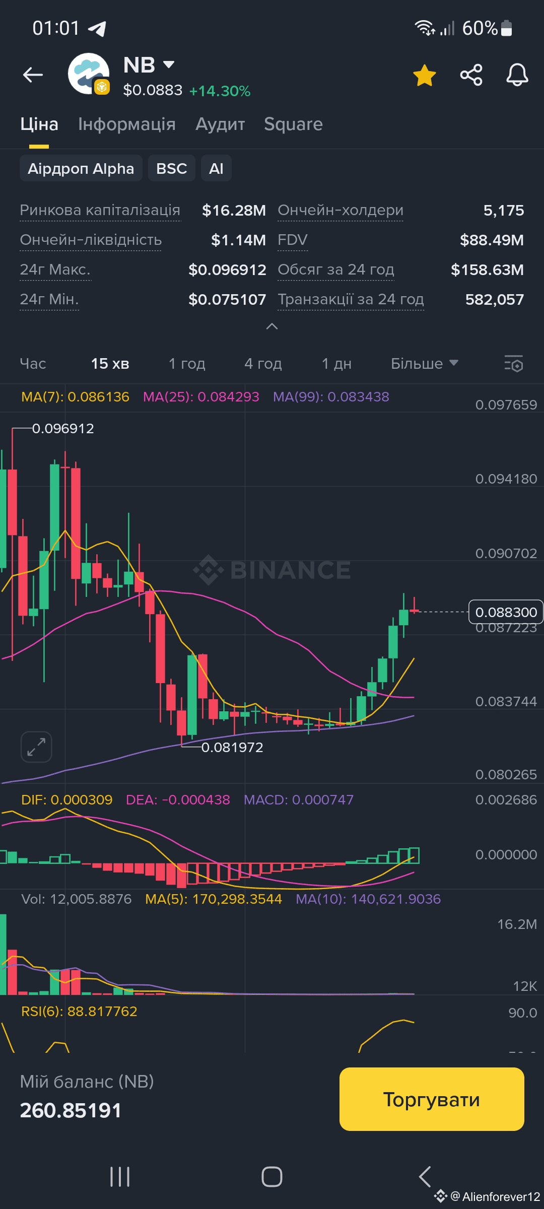 Токен **$NB ** (Nubila Network) продовжує демонструвати ознаки сильного **альфа-активу**, привертаючи увагу інвесторів завдяки вражаючим ончейн-метрикам та технічному імпульсу (зростання **+14.30%** за 24 години!).