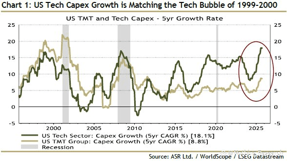 2. 美国科技行业资本对于基建的投资达到 2000 年互联网泡沫的水平