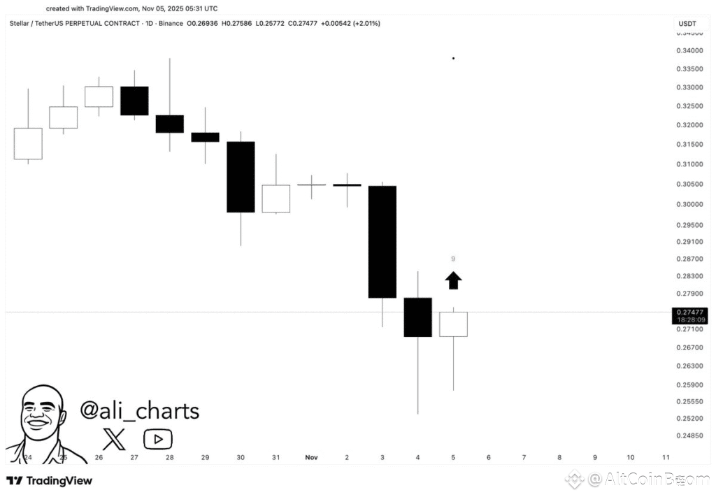 Supporting this structural outlook, trader Ali reported that the TD Sequential indicator flashed a buy signal for XLM. Historically, these signals have aligned with local market bottoms, potentially marking the beginning of the next upward move.