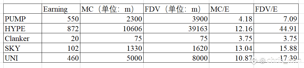 来看看目前有收入并且有回购的项目们的估值: