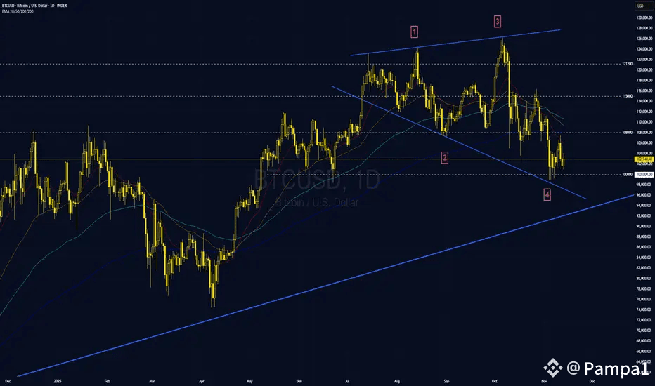 Here’s the thing: Bitcoin is trading just above the $100,000 mark, and while it looks like it might be catching its breath, the sell-off may not be fully over. The daily chart shows signs of support forming, but the structure isn’t yet shouting “bottom confirmed.”