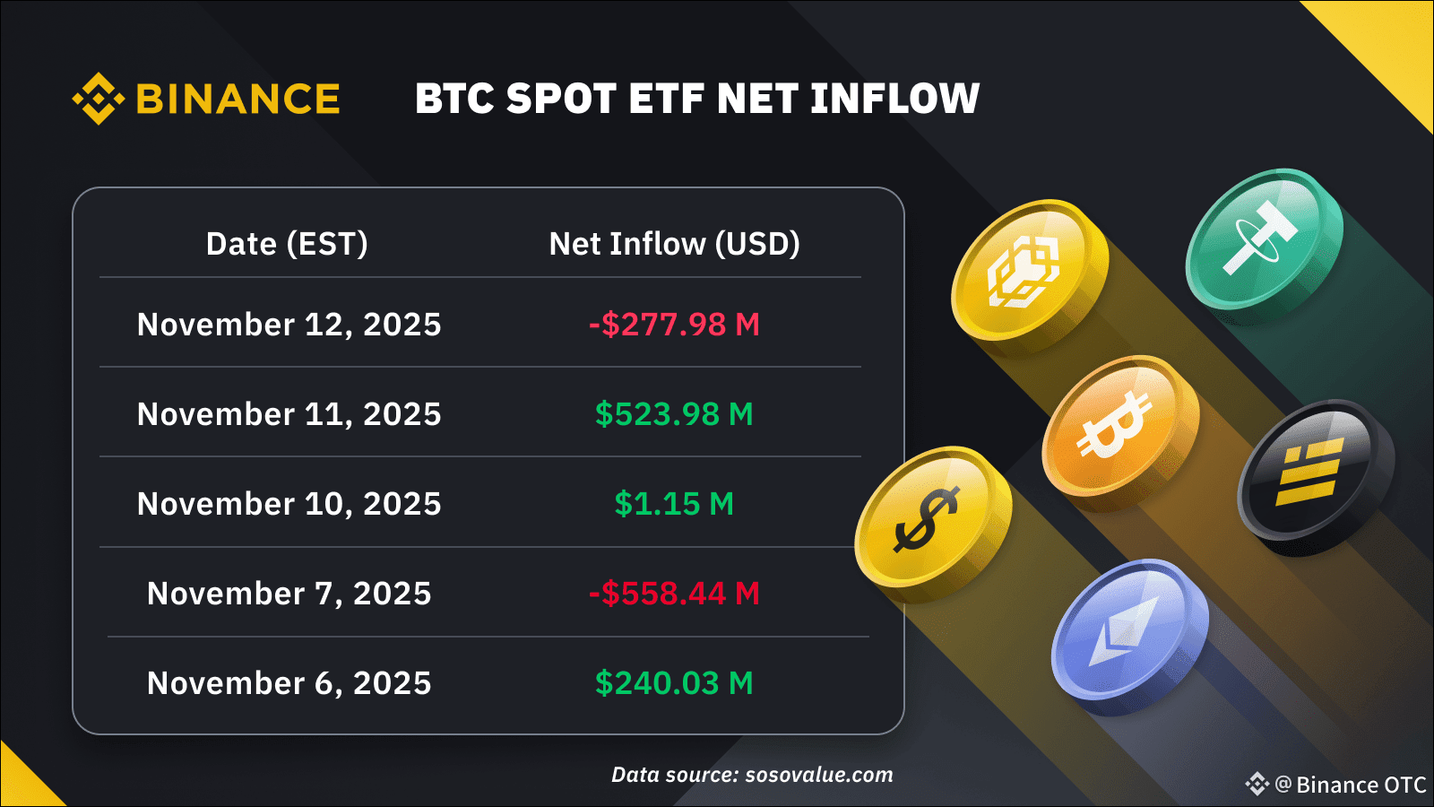 The above table shows the daily BTC spot ETF net inflow data for the past five trading sessions.