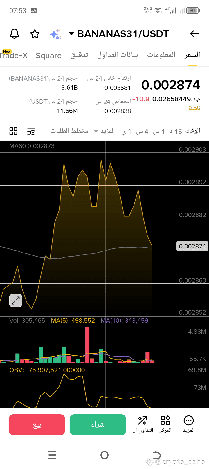 حجم التداول خلال 24 ساعة: