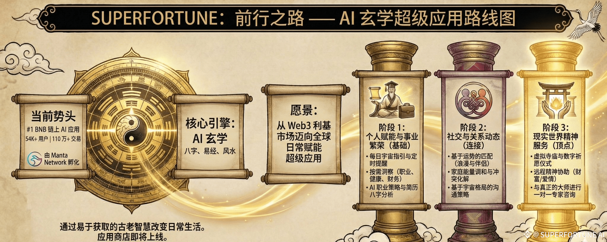 SUPERFORTUNE 由 Manta Network 孵化,构建于我们自研的 AI 玄学引擎之上。该引擎经过精心调校,汲取了数百年的传统智慧,旨在为加密交易及日常生活提供全新的视角。