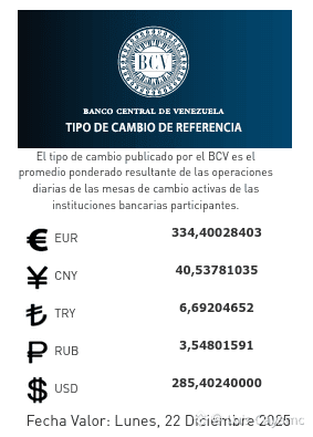 Estado actual: Se sitúa alrededor de los 285.40 VES, y se actualiza prácticamente a diario. Es difícil para un ciudadano común comprar dólares a este precio en los bancos de forma inmediata.