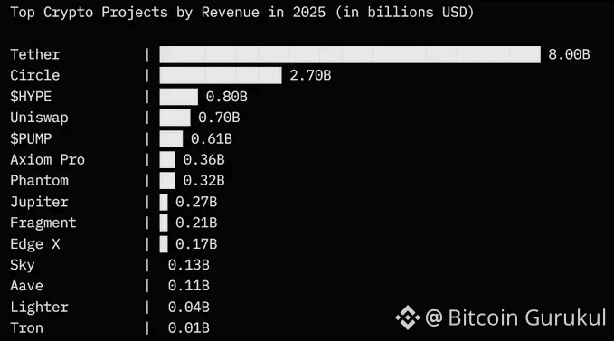 I spent the weekend going through the latest data, and here's what's actually happening in the crypto space right now. These aren't market caps or theoretical valuations—this is cold, hard revenue that these protocols actually generated in 2025: