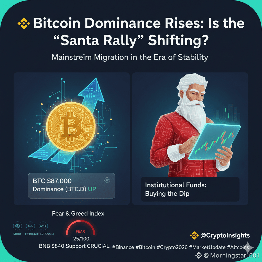 Bitcoin is currently trading near $87,000, showing resilience even as liquidity thins out for the holiday season. Whatâs interesting isn't just the priceâit's the Dominance (BTC.D).