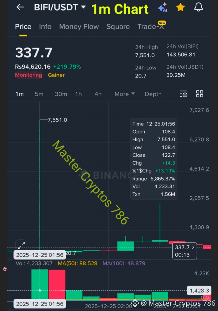 How did $BIFI suddenly jump from around $20 straight to $7,551, and then quickly return to the $300 range? 🤯
