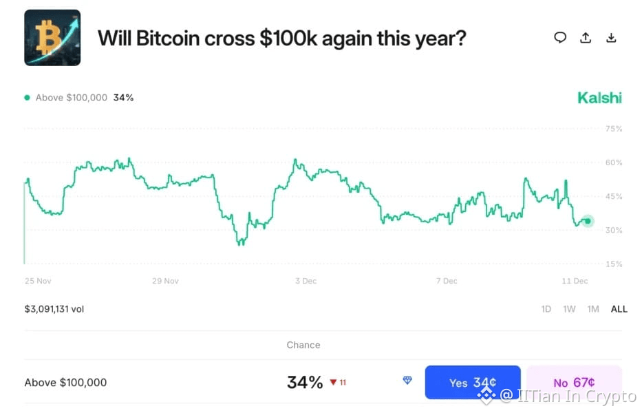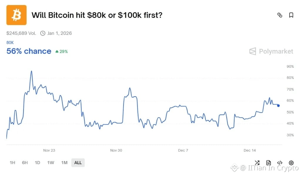 Some markets price a 50–65% probability of Bitcoin crossing $100K before 2026.