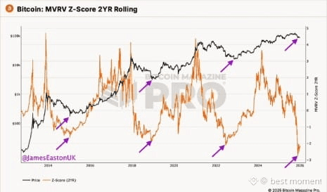 The 2-Year Rolling MVRV Z-Score has plunged to one of the deepest levels ever recorded, pushing Bitcoin into a zone that has historically preceded major trend reversals.