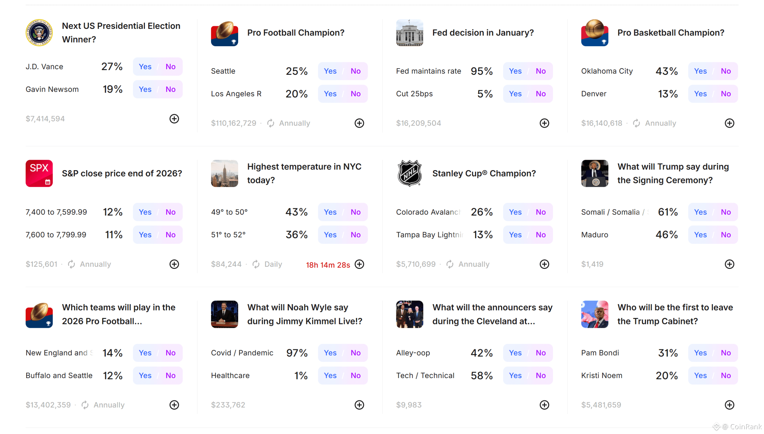 The scope of events available on Kalshi Prediction Market is broad and spans multiple real-world domains, including weather, politics, economics, finance, and certain public or entertainment-related topics. Examples include whether a particular policy will pass, whether a company will enter bankruptcy, or whether a predefined economic indicator will reach a certain level. As long as an event has a clearly defined and verifiable outcome, it can potentially be listed on Kalshi.