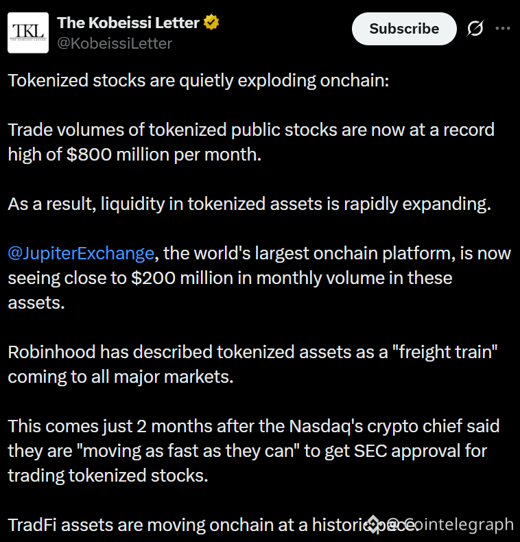 More companies are moving into the space. These include Backed Finance, whose xStocks suite offers exposure to dozens of tokenized equities traded on exchanges such as Kraken and Bybit. Securitize has also announced plans to support onchain trading of public stocks, alongside similar initiatives from Coinbase and Ondo Finance.