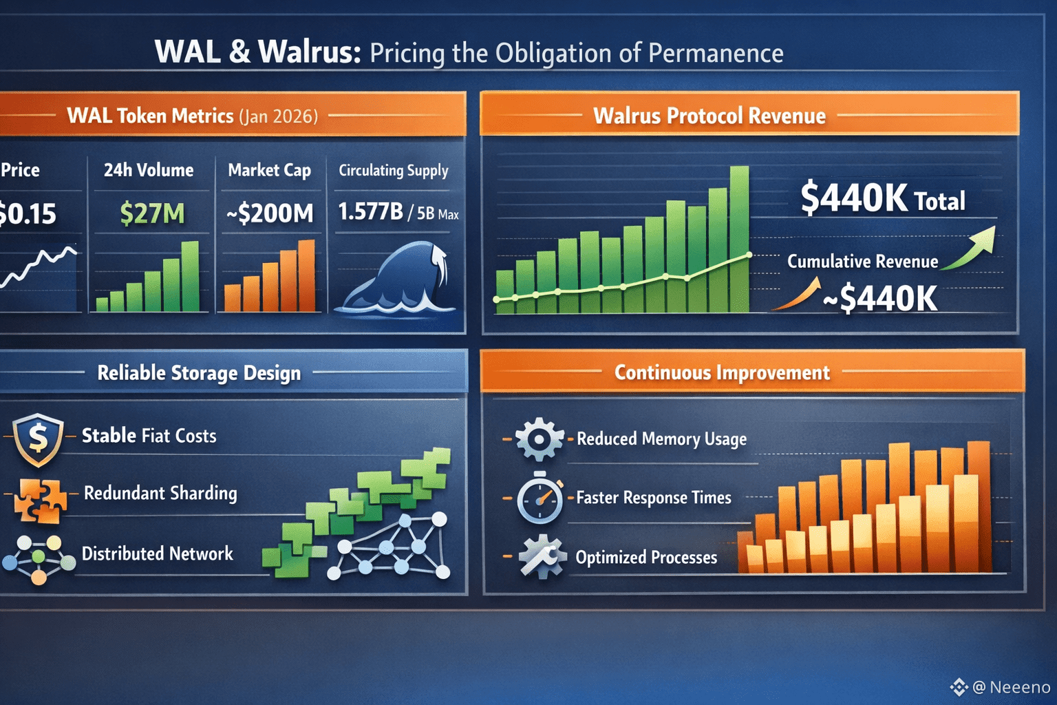 So if you want a clean way to think about WAL in January 2026, keep it simple and serious. WAL is priced by the market every day, but it is justified by Walrus over long stretches of time. The token’s liquidity and supply numbers tell you the market is paying attention. The payment design tells you Walrus is trying to protect usability even when markets are emotional. The recent updates tell you the team is working on the kinds of bottlenecks that decide whether this becomes dependable infrastructure rather than a clever demo. The revenue line tells you the system is already being used in a way that creates real economic activity, even if it’s still early