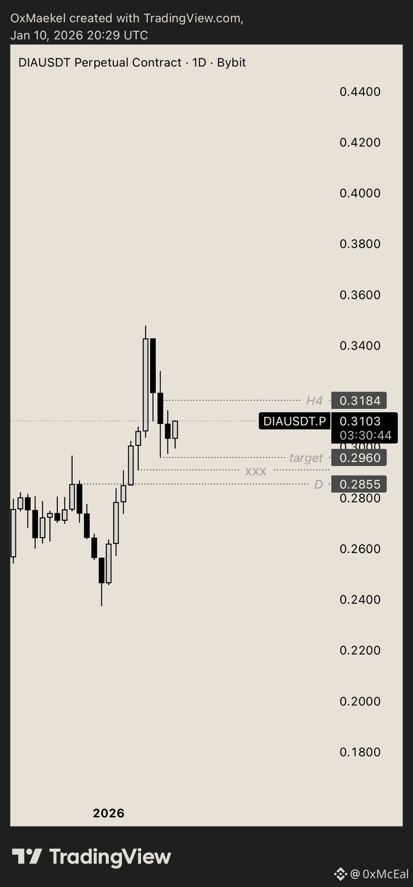 $DIA is in a healthy consolidation phase after recent gains. The $0.2855–$0.2947 zone is critical, a breakout above $0.3027 would signal the next leg up, while a breakdown could offer better entry points.