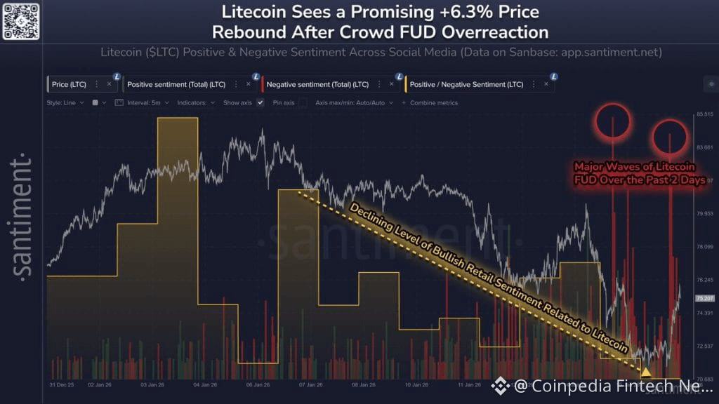 Market mood can shift fast, especially when volatility is low and traders are hunting quick exits. In Litecoin’s case, the latest sentiment data shows optimism fading while fear-driven chatter spikes. This is an imbalance that often appears when conviction weakens and rallies struggle to sustain.