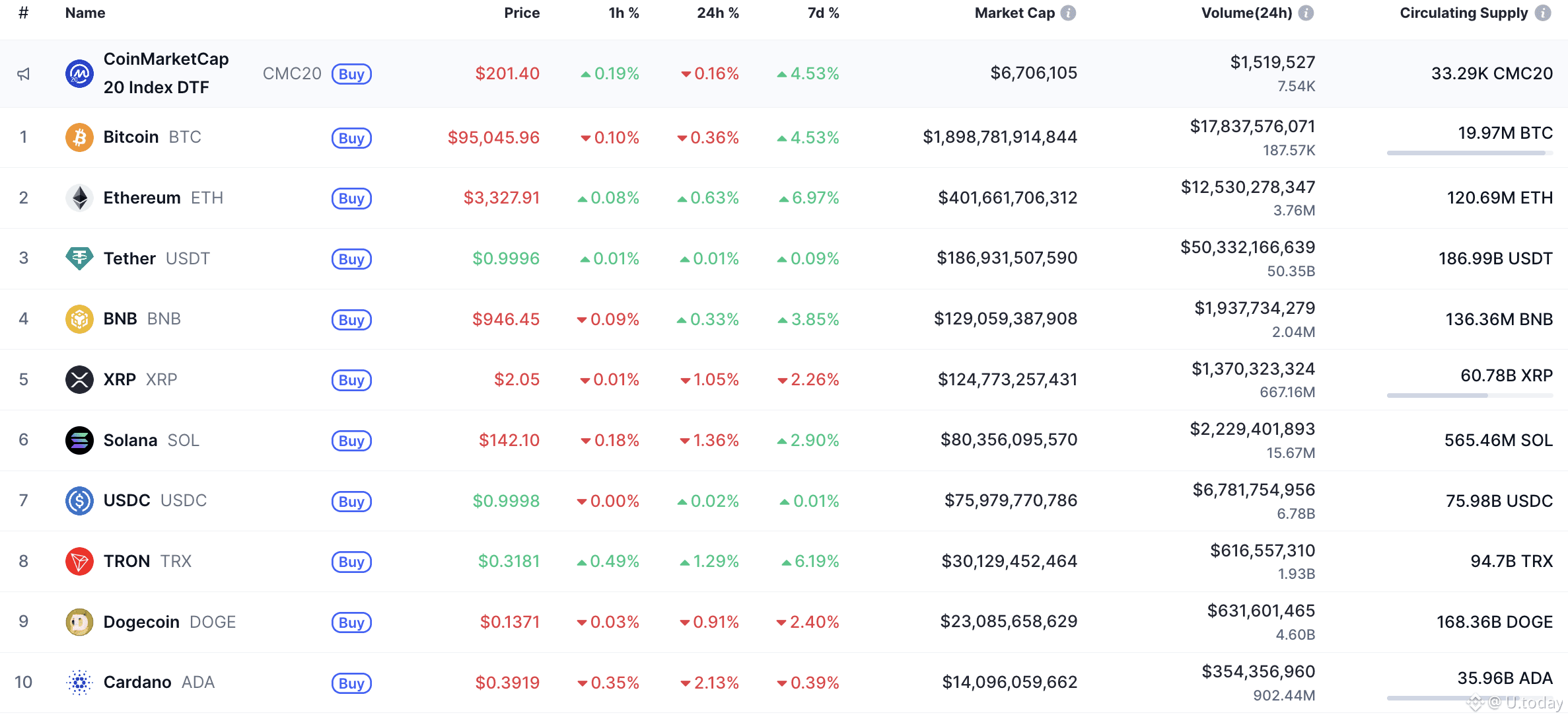 The market remains mainly green at the end of the week, however, there are some exceptions, according to CoinMarketCap.
