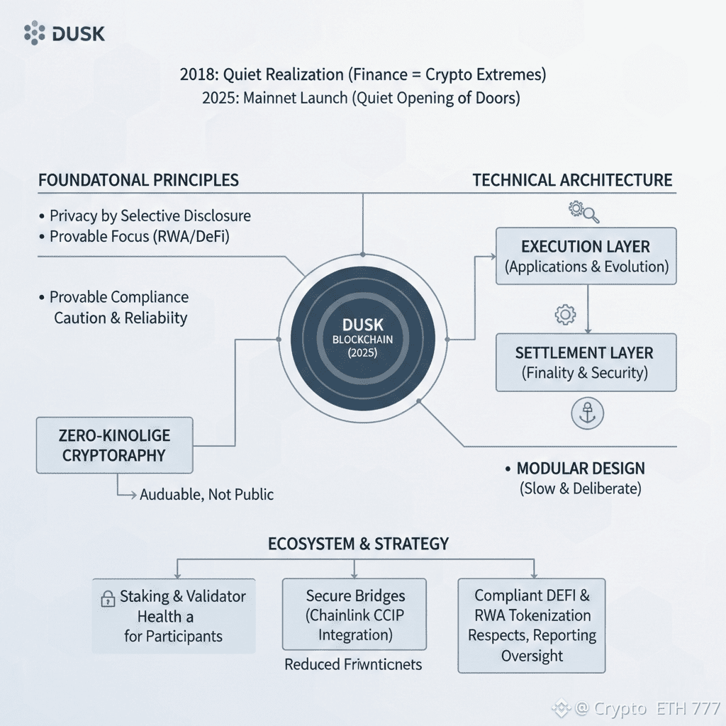 When Dusk first appeared in 2018, it didn’t arrive with loud promises or flashy slogans. It came from a quieter realization: the financial world doesn’t actually work the way most blockchains assume it does.
