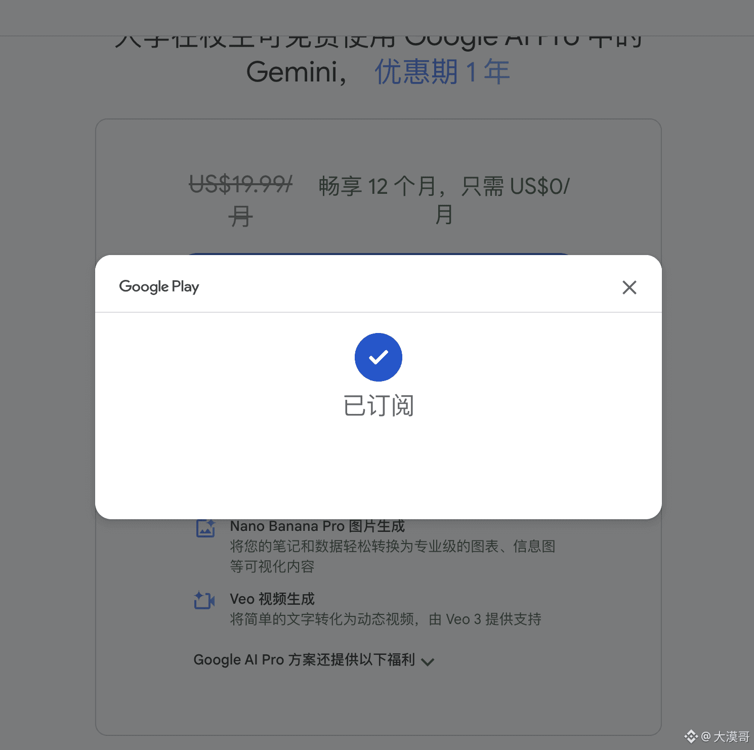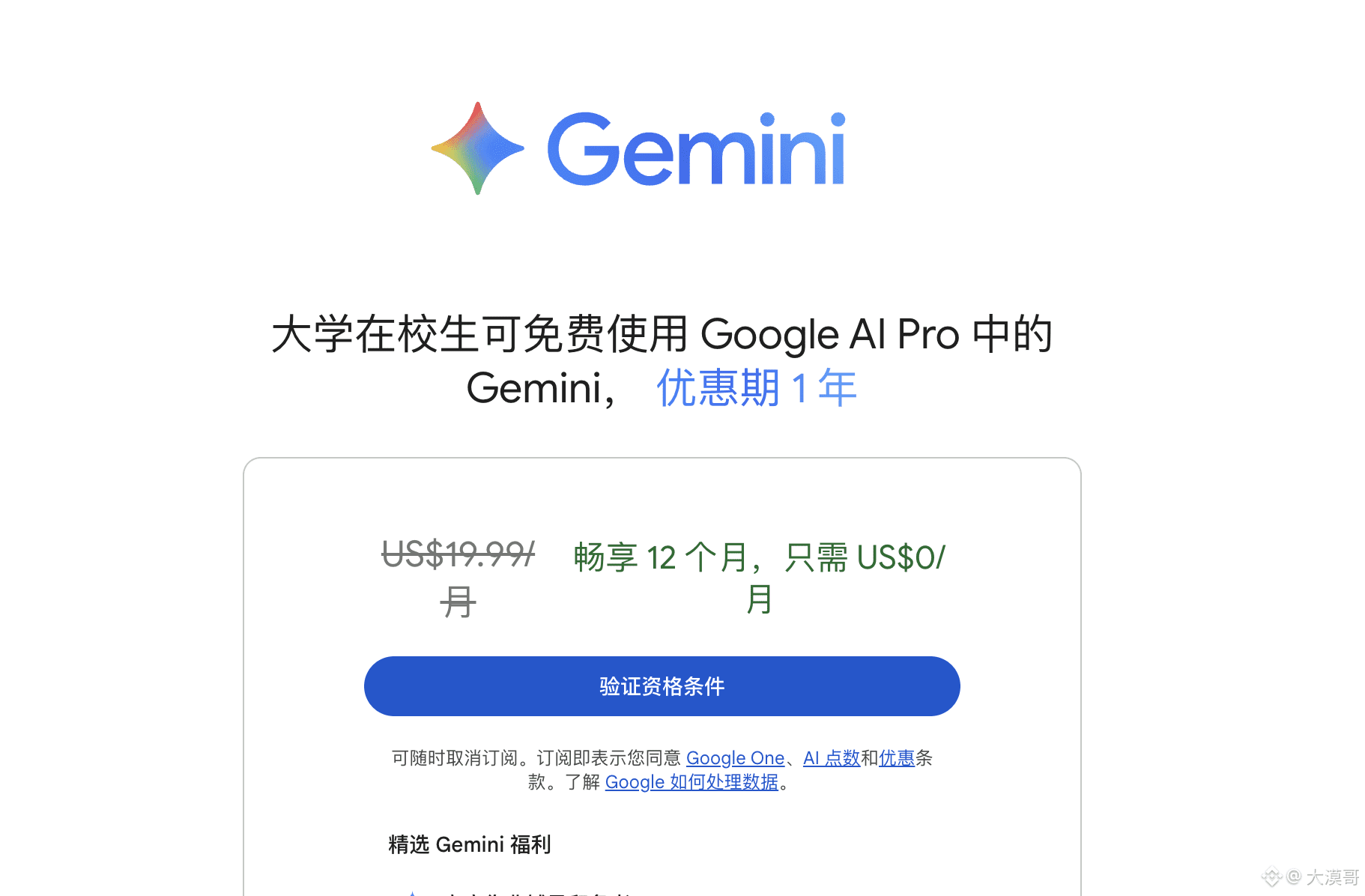打开 Gemini 学生优惠页面,点「获取优惠」: