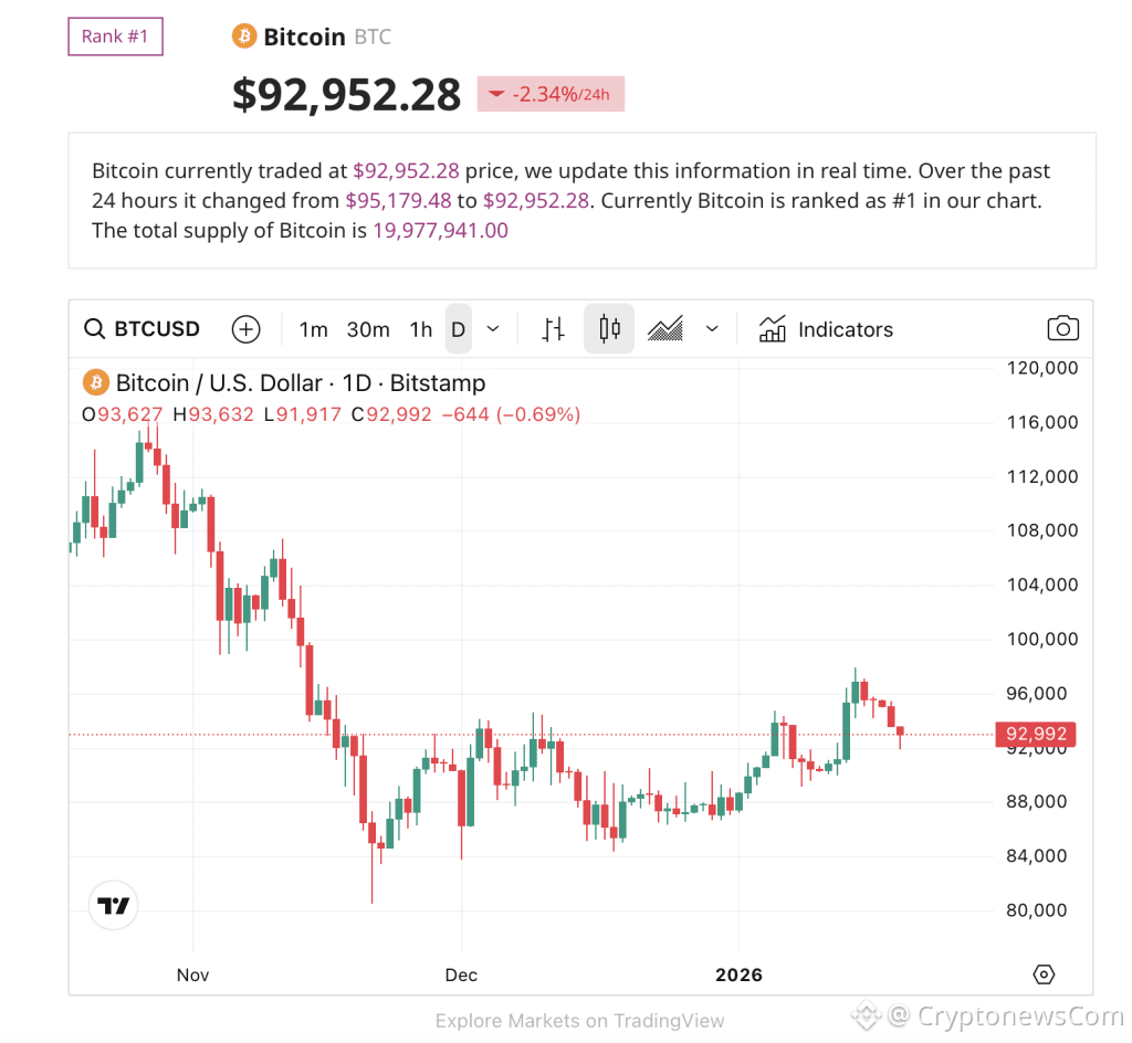 On Monday Bitcoin’s price action is showing near-term consolidation after a sharp pullback, with BTC trading around $93,000following a rejection from the mid-$90,000s.
