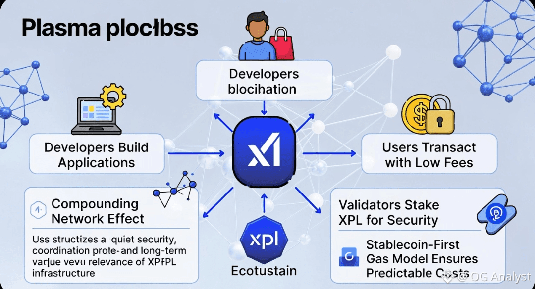 As more developers and users join Plasma, the value of holding XPL increases in a quiet, structural way. Not because of artificial scarcity or marketing narratives, but because XPL sits at the center of network activity, security, and coordination. This article is about unpacking that relationship carefully—how ecosystem growth translates into token relevance, and why that matters for anyone evaluating Plasma as infrastructure rather than hype.