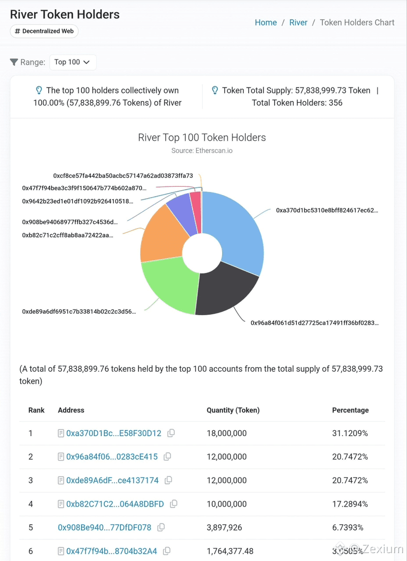 On-chain wallet data shows that RIVERâs token supply is extremely concentrated.