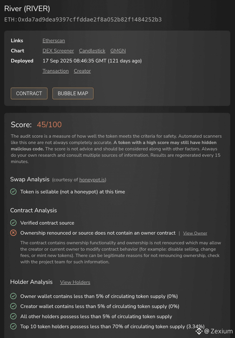 $RIVER currently operates within a high-control, high-volatility market framework.